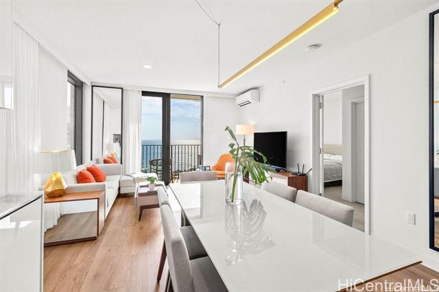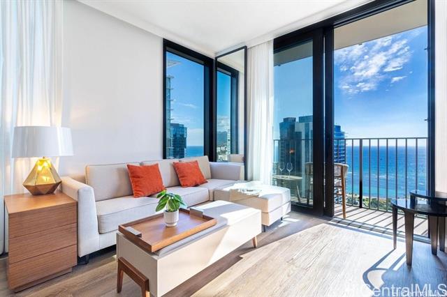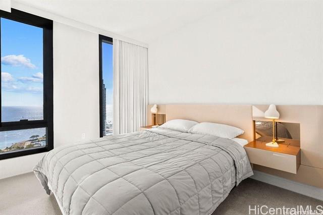 High floor unit at 'A'ali'i in Ward Village! Located in the popular ‘02 stack with beautiful ocean views, Unit #3602 is a beautiful 2 bed and 2 bath unit. Fully furnished, plus new mattresses, new carpet in both bedrooms, and new 800G waterdrop reverse osmosis system! Bright and modern with Bosch appliances. The unit offers 2 parking spaces and a storage unit located above the parking stall. 'A'ali'i offers excellent amenities for convenient resort-style living in Honolulu. Enjoy the spacious pool and private cabanas, fitness center, spa, yoga room, sky terrace, and BBQ grills, dog park and indoor/outdoor event spaces. Plus a kid’s play area and kid’s pool! Ideally located in the heart of Ward Village, 'A'ali'i is right by Whole Foods, popular restaurants, movie theater, farmers’ market, playgrounds, cafes, shopping, and so much more.