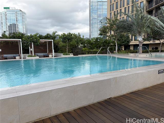 A'alii is centrally located in Ward Village close to Whole Foods and other food and commercial establishments. Short walking distance to Ala Moana Beach Park for your recreational needs. This preferred "02 Stack" Diamond Head side corner condo has never been occupied; almost brand new! Physical layout of this desirable high floor unit with 2 bedrooms and 2 full baths is well organized for the convenience of occupants in mind. Bosch appliances, natural stone counter tops, window shades, two closet systems and more. Excellent amenities are among the benefits which enhance the living quality. Priced to sell with special storage! This storage unit is located right next to the #3702 main entrance (see photos); separate door and owner purchased separately. Plus, exceptionally convenient parking stalls; one stall located on the 2nd level at the garage entrance. The second stall also located on the 2nd level with additional storage. MUST SEE!!
