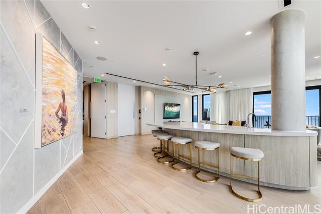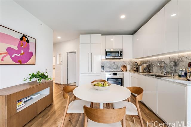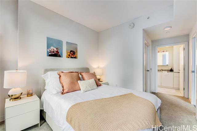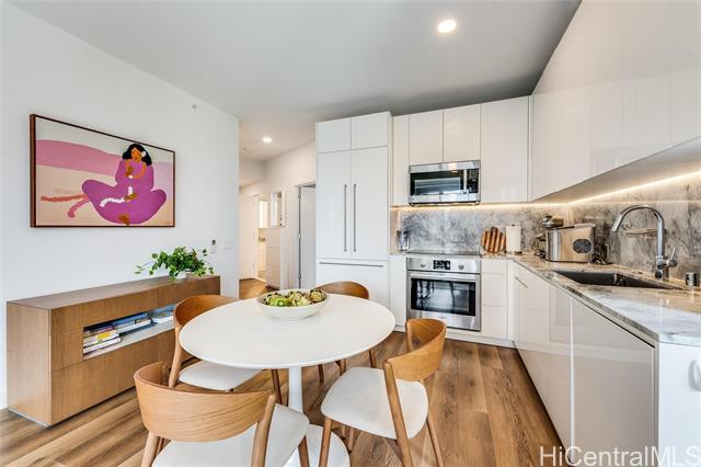 Experience luxury living at 'A'ali'i in the heart of Ward Village in Kaka'ako! This stunning front-corner 2-bedroom, 2-bath condo, designed by renowned Solomon Cordwell Buenz and Rottet Studio, offers a modern, sophisticated lifestyle in one of Honolulu’s most coveted communities. Fully furnished with sleek, space-saving design, this residence maximizes comfort and style. A rare find, this corner end unit is the most desirable 2-bedroom floorpan in the building, featuring in-unit washer/dryer, a walk-in closet in the primary suite, 1 parking stall with storage lockers above and an additional storage room in the building. Floor-to-ceiling windows flood the space with natural light, while high-end finishes and premium appliances enhance the contemporary appeal. Enjoy Penthouse-level amenities on Lanai 42, a full-floor oasis for relaxing and socializing, provide gorgeous 360° views of land and sea and a state-of-the-art fitness center and yoga studio. Additional resort-style amenities include private lounges, pool, spa, playground, dog park and BBQ cabanas. Live steps from world-class dining, shopping, movies and the vibrant urban lifestyle of award-winning Ward Village.