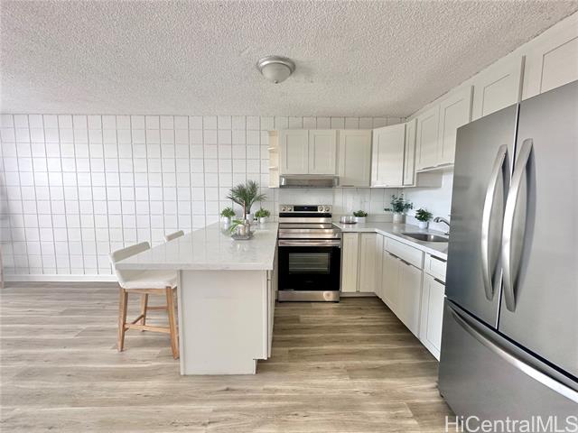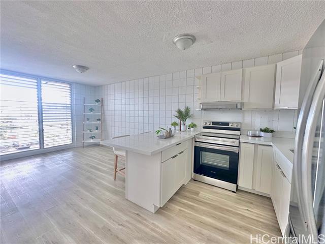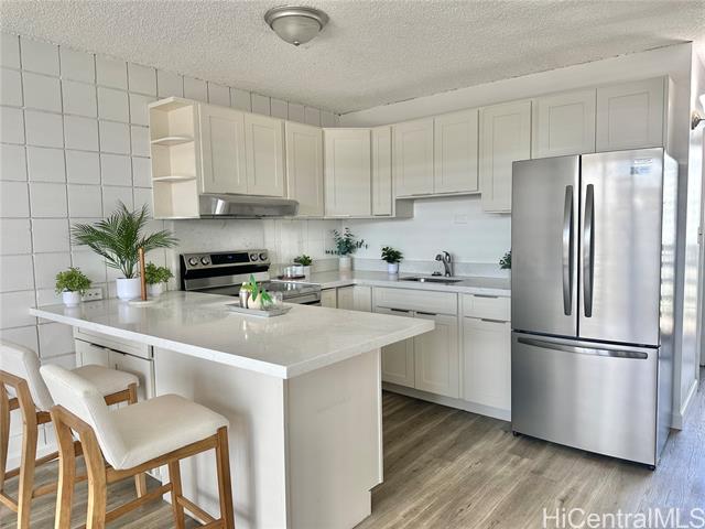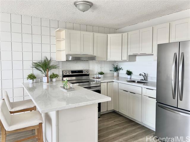 Super Convenient Location in the Heart of Kalihi - close to shopping, schools, business, bus routes. Newly Renovated Kitchen, Bathroom, Stainless Steel Stove; Brand New Refrigerator, Hood! Cute Barn Door and new paint! Newly renovated flooring (2024). Building has gated parking, relatively near the entry. New Security Door and new baseboards. Resident Manager is on the premises. Pet Friendly (Please Verify House Rules). Maintenance Fee includes Sewer and Water, Electric is separated per unit with HECO. Maintenance fee is $411.68 / month and 50% Owner Occupancy. Hurricane Insurance is 100%. Don't miss out : Bright and cheery - close to Costco, Home Depot, Airport, Freeway, it's going to be great!