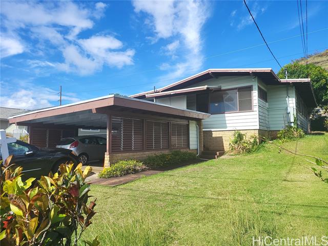 Pet-friendly single family home with 5 bedrooms in Honolulu for under $1M. No maintenance fees. Live and work in town. Huge 5,500 sf of landscaped yard. Quiet and breezy 5-bedroom, 1.5 bath single family home close to everything in town yet feels like living in the country. Minutes to airport, downtown, Ala Moana and Waikiki. Easy access to H1, H3, Kaneohe and Pearl Harbor. A spacious 600+ sf of covered & fenced patio in the back of the house for family gatherings, parties, or extra storage. Mature mango tree, calamansi tree, and ulu trees abound. Beautiful hardwood flooring. Partly remodeled in 2023. No back neighbor. Pet friendly. Lots of storage spaces. Number of rooms does not match tax record. Sold AS-IS. Seller will not make repairs or concessions. Buyer must accept termite report and survey report with offer. Please refer to supplement for offer detail. Seller offer Buyer $20K closing credit for rate buy down or flooring. Open House 10/5 Sunday 2-5pm.