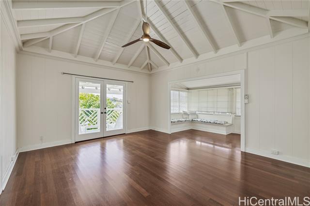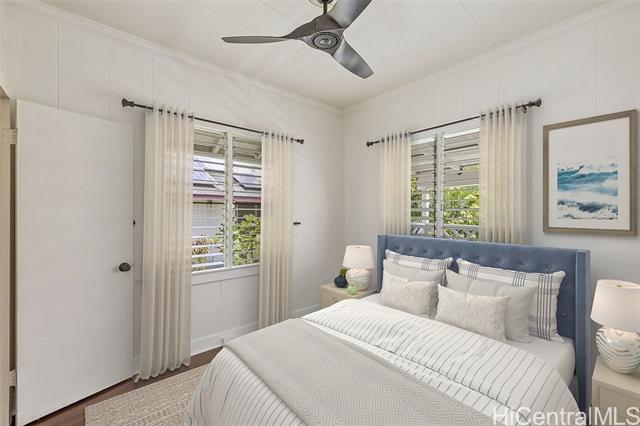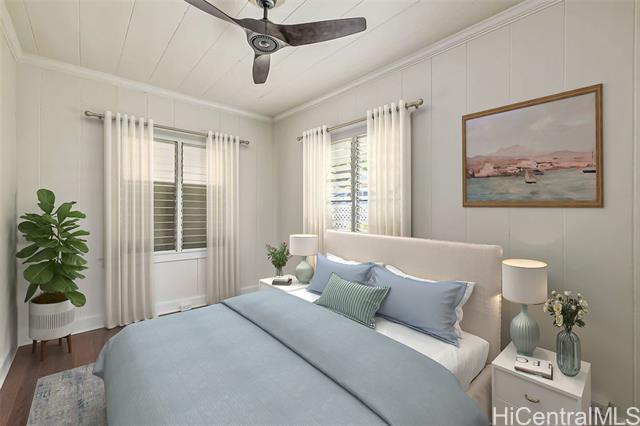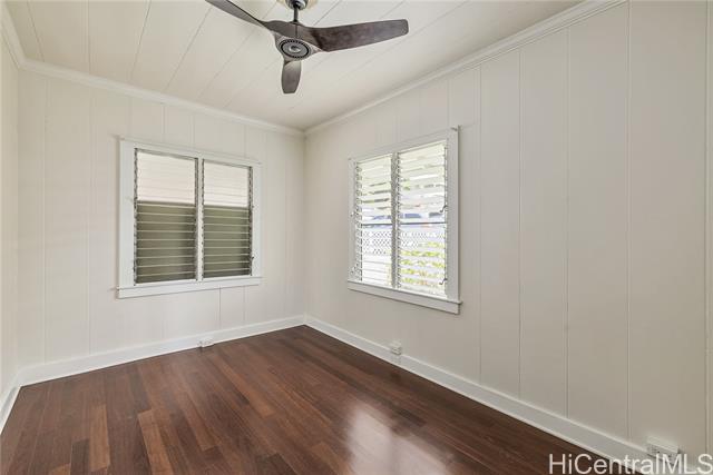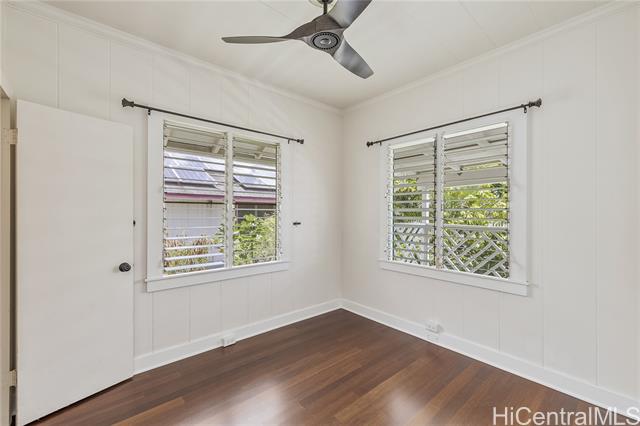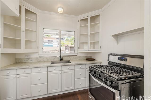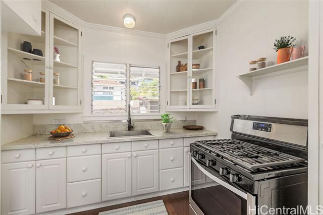 Vintage charm meets modern convenience in this remodeled home featuring 4 bedrooms, 2 baths, and a flexible 2-entry layout ideal for 2 Flexible living area separations with separate kitchenette, or just large 4 bedroom living. Enjoy 1,680 sq. ft. of interior space, a spacious 5,000 sq. ft. fee simple lot with mango & other fruit trees, and a peek-a-boo ocean view. Highlights include a newer metal roof, vintage hardwood floors upstairs, ceramic tile downstairs, gas stove, 2 dryers, and 3 parking spaces including a 180 sq. ft. covered carport. Redwood single-wall construction upstairs, double-wall downstairs, plus a 460 sq. ft. lanai and under-house storage. Conveniently located near Pali Hwy, Likelike Hwy, H-1, and close to The Bus stop.