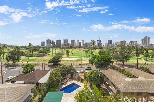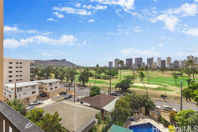 2 PARKING!!! Enjoy stunning views of the golf course and Diamond Head from this 2-bedroom, 2-bath condo in the heart of Honolulu. Each bedroom features its own ensuite bathroom, offering privacy and comfort, while the open floor plan makes for easy living. The in-unit washer and dryer add everyday convenience. This home also includes two dedicated parking stalls—a rare find in this prime location. Centrally situated near Waikiki, Ala Moana, and the University area, you’ll love the accessibility to shopping, dining, and beaches. The perfect blend of comfort, convenience, and island charm. Pet Friendly :)