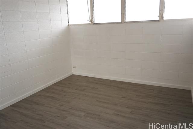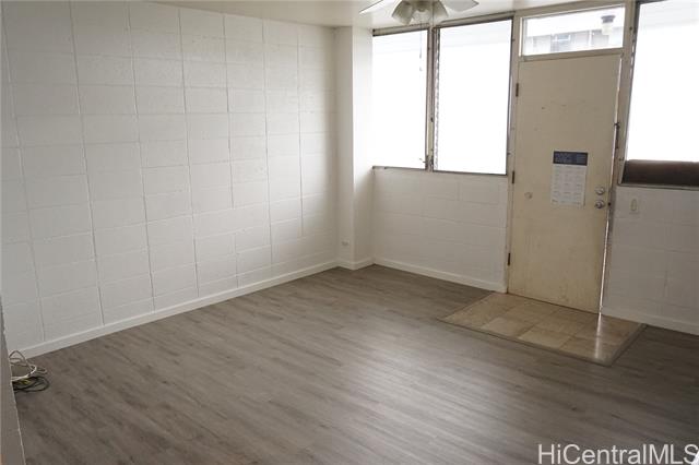 Location, Location. Welcome to Kokea Gardens! Featuring 2nd floor unit, 2 bedroom and 1 bathroom. The unit comes with assigned uncovered parking stall across the unit. The unit has a spacious lanai with an area for washer, dryer and clothes lines. Newer kitchen cabinets. Newly installed plank vinyl flooring and new interior paint. Conveniently located near bus lines, Palama Supermarket, Costco and Chinatown.