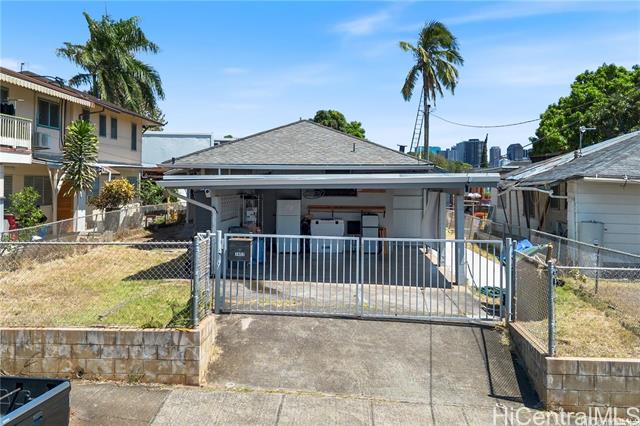 Step into this delightful single-level residence in the heart of Kapalama, where comfort, versatility, and island living converge! This thoughtfully designed home offers a flexible floor plan, perfect for multi-generational living or creating distinct living spaces for multiple families. The highlight is the expansive king-sized primary bedroom, featuring a luxurious ensuite bathroom and its own private entrance, ideal for added privacy or guest accommodations. The property boasts a generous, fully fenced, level yard that’s perfect for hosting gatherings with loved ones or providing a safe haven for your furry friends to roam freely. Inside, modern comforts await with Split AC for year-round climate control, sleek luxury vinyl flooring, and ample natural light that enhances the home’s warm and inviting ambiance. Additional features include a convenient 2-car carport, offering plenty of parking and protection from the elements, as well as an attached storage room to keep your belongings organized. Home is being sold "As Is." Open House 11/22/25 CANCELLED