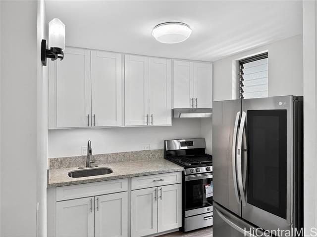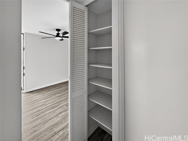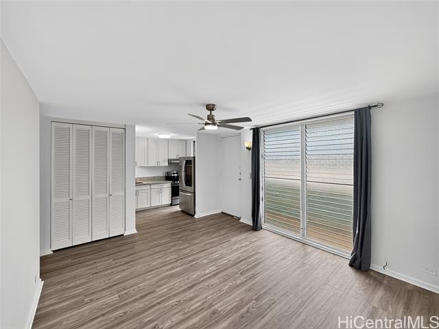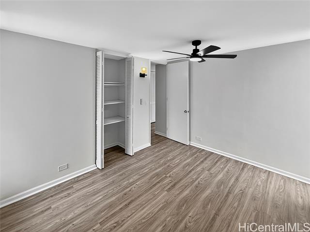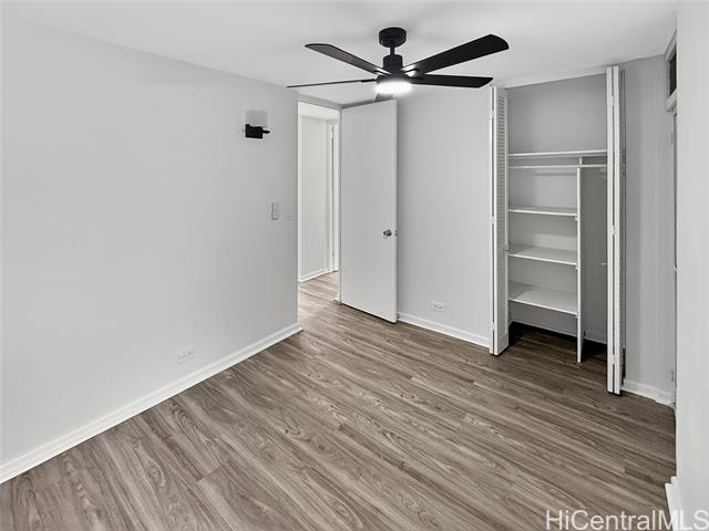 Great location, This convenient and comfortable newly renovated 2-bedroom, 1-bathroom corner unit offers the perfect balance of functionality and comfort. Installed with all modern hidden wire LED lighting, new fans and AC in every room for your comfort. Newly installed vinyl flooring throughout, Cinder block wall patched up & Popcorn ceiling removed! Updated Kitchen with huge 29 Cu. ft refrigerator and new wall niche tub style finish shower. All custom built closets throughout for extra storage room and all your storing needs. With an Extra long parking stall that can fit one 8ft bed truck or may fit up to two small compact vehicle. Features community laundry area. Nearby to Freeway, Ward, restaurant, Blaisdell center, shops for your convenient & travel!