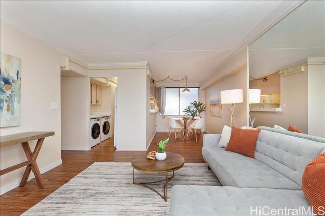 Discover an exceptional buying opportunity with this corner-end 2BR/2BA/1PKG condo, offering unbeatable value! Located on the desirable low 4th floor, you’ll enjoy easy access and stunning views of the community park, Ala Wai canal, and the vibrant lights of Waikiki. The spacious wrap-around covered lanai is perfect for relaxation. Inside, the unit features a fire sprinkler system, washer, dryer, and a practical floor plan. Marco Polo is a secure building just minutes from Waikiki, the University of Hawaii, bus lines, golf courses, and a variety of dining options in the culturally rich Moiliili neighborhood. Experience the exciting transformation of Marco Polo, now one of the best-upgraded buildings in the area, boasting new piping and a retrofitted fire sprinkler system for your safety and peace of mind. Enjoy fantastic amenities, including a recreation deck with six BBQ grills, basketball and tennis courts, paddle tennis/pickleball, and a driving range for residents and their guests. The garden area features a swimming pool, complete with men’s and women’s saunas, showers, and restrooms. Enjoy peace of mind w/ 100% hurricane insurance coverage and it’s a VA approved bldg.