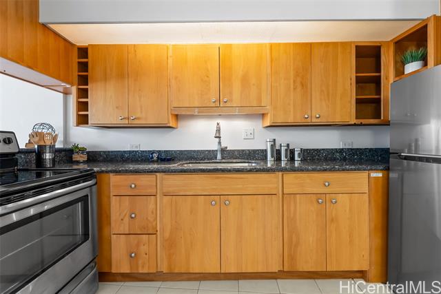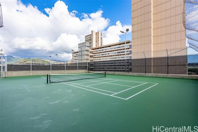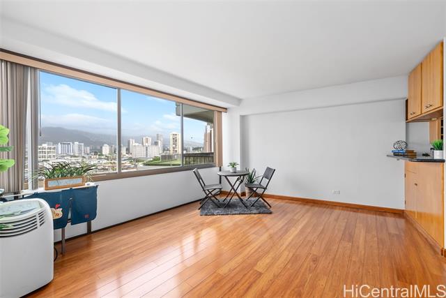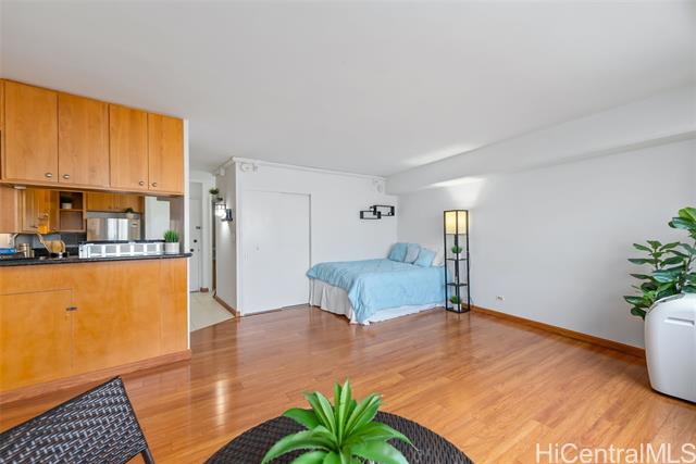 Updated, clean, and move-in ready! This efficient studio, located on the cool mountain side of the building, boasts laminate flooring, modern cabinets and counters, stainless steel appliances, a portable AC and a full-size stacking washer/dryer. Plus, it comes with a convenient parking stall with easy access to the building. Enjoy an array of top-notch amenities, including a swimming pool, tennis and pickleball courts, a basketball court, driving range, BBQ area, security, and a recreation deck. Perfectly situated near Waikiki, Ala Moana, and Manoa, with plenty of shops, restaurants, and entertainment just minutes away. Don't miss this opportunity to own in a well-maintained, updated building. Fully insured with water sprinklers installed throughout. An additional monthly fee of $103.58 goes toward ongoing reserves. Monthly Tax Amount is based on 2024 Tax Assessed Values.