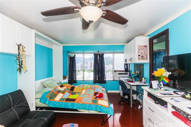 Well maintained high floor studio with views of the city and mountain. Unit comes furnished with a built-in Murphy bed and storage. This unit is perfect for the first time home buyer or investor. Being in close proximity to the University of Hawaii and other schools, this units offers convenience for students or teachers and their furry companion. Unit is currently tenant occupied and have been consistently rented.