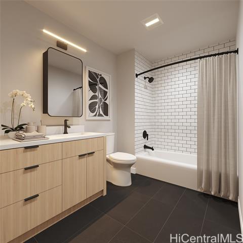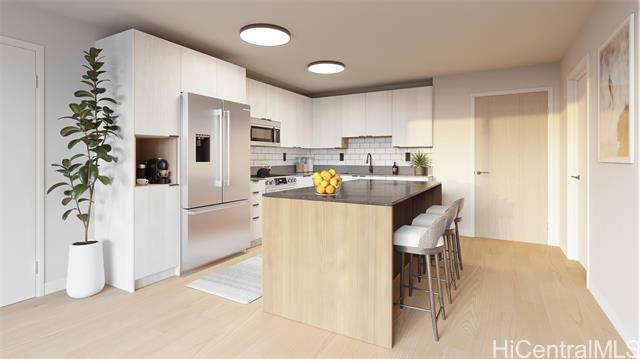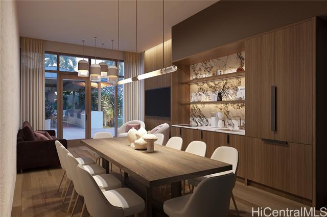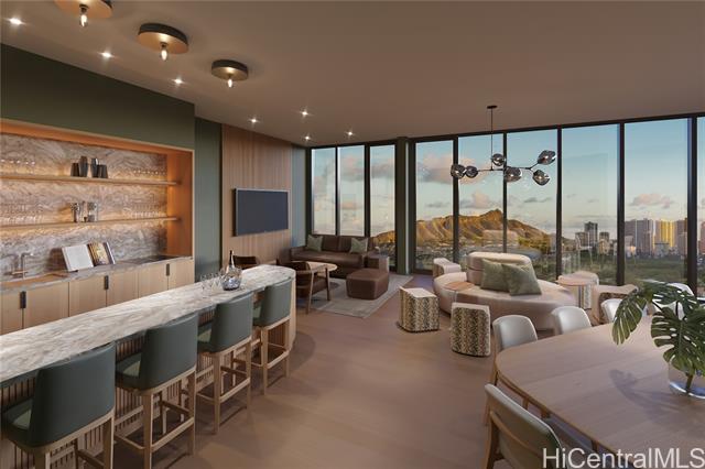 A freshly designed loft full of possibilities. Oversized windows fill the space with natural light, while soaring 16.3-foot ceilings create an open, airy atmosphere that makes you feel at home. The flexible two-level floor plan adapts to your lifestyle—perfect for everyday living, a private upstairs retreat, or a comfortable home office. On the first level, you’ll find two convenient entrances with parking directly behind the unit, a generously sized living room, a gallery-style kitchen with Bosch appliances, an enclosed den for an office or bedroom, and a half bath. Upstairs, the spacious bedroom offers room for a desk or sitting area, a walk-in closet, and a full bath—your own quiet space to unwind. Located on Kapiolani Boulevard, Kuilei Place blends city convenience with a true sense of home. Interiors are by award-winning Philpott’s Interiors. Sustainable features include water reuse, solar heating, and EV chargers. Resort-style amenities extend your living space beyond your front door: swimming pools, BBQ cabanas, two dog parks, a playground, walking paths, two fitness centers, and seven inviting club rooms. Let’s welcome you home.