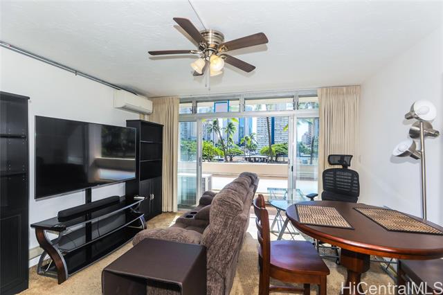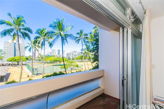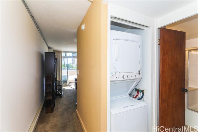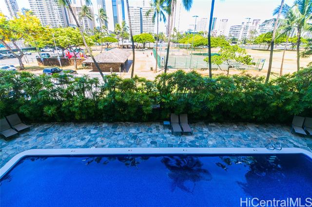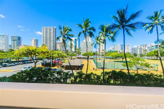 Discover urban tranquility in Ala Wai Plaza, nestled in the heart of Honolulu. This well maintained 1bedroom, 1 bathroom residence with washer and dryer in unit and split AC in living room offers a perfect blend of comfort and convenience in a fantastic secure pet friendly building. Enjoy serene views from the private lanai overlooking the park, perfect for relaxation or entertaining guests. Ala Wai Plaza offers residents exclusive access to amenities such as a swimming pool, fitness center, bbq area, secured surfboard and bike room, storage unit and community lounge enhancing the lifestyle experience. With its central location, this property provides easy access to nearby dining and shopping, ensuring convenience at every turn.