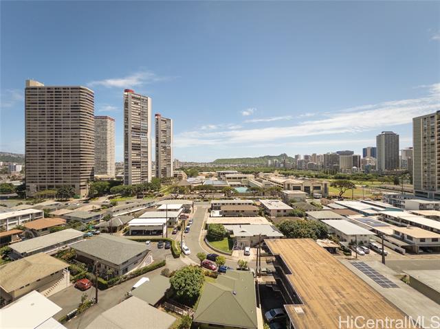 This attractively priced 1 bedroom, 1 bath residence with 1 parking offers a beautiful view overlooking Diamond Head and a layout that feels both open and private. The unique split-level floorplan places the living area upstairs, creating a comfortable separation from the bedroom and bath below. Upgraded windows and a washer and dryer are conveniently located in the unit, and the home is ready for your personal touch with opportunities for upgrades. Located around the corner from Iolani School and near public schools, this in town setting also provides easy access to the freeway, bus lines, Waikiki, UH, and everyday conveniences. A compelling option for those seeking location, view, and value in one well designed space. Images have been virtually enhanced.