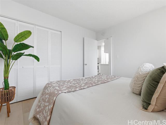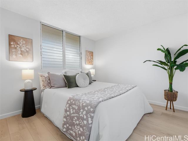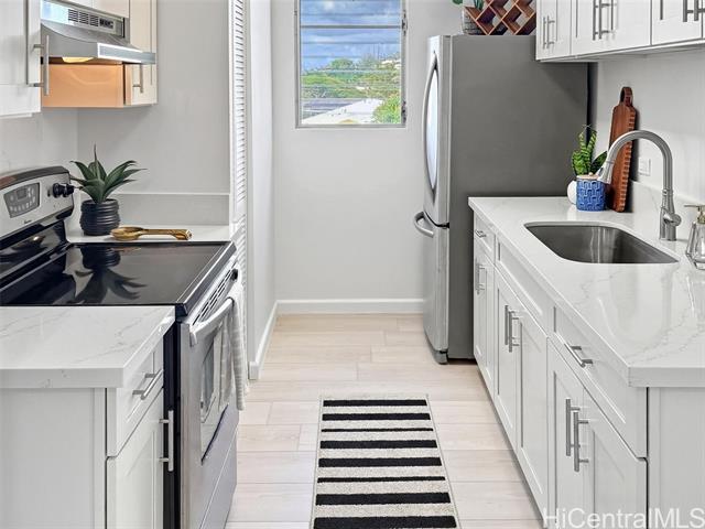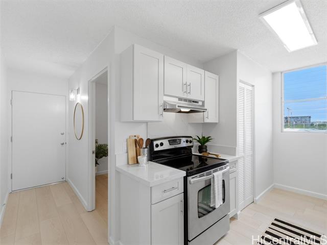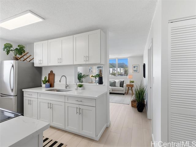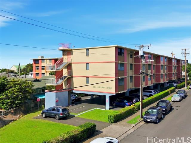 Exceptional opportunity to own a turnkey 3-bedroom city oasis for under $400k! Experience urban living in this rarely available, top-floor corner residence at Nalanui Hale in Liliha! Fully, meticulously remodeled in 2025, this stunning, move-in ready home features new luxury vinyl flooring, new contemporary kitchen and bathroom, fresh paint, new window screens and light fixtures, and many more upgrades throughout. Enjoy abundant natural light, cool mountain breezes, and sweeping views of the Honolulu skyline and vibrant sunsets. All-inclusive maintenance fees cover electricity, internet, cable, water, sewer and common maintenance, providing exceptional value. This unit features 1 assigned covered parking stall in a secured building equipped with fob access and video surveillance. Amenity highlights include additional storage, elevator, community laundry, car wash area, and trash chute. The prime location provides immediate freeway access and is steps from iconic Liliha Bakery, Kuakini Medical Center, Downtown Honolulu, Chinatown, schools, grocery stores, fire station, hospitals and healthcare clinics, restaurants, parks, churches and bus routes. Don't wait! Schedule your tour now!
