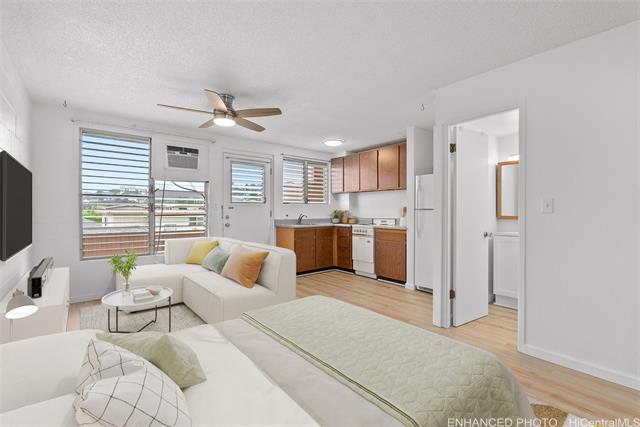 Discover this charming studio/1 bath unit with 1 covered parking in Nalanui in Liliha, perfect for those seeking convenience w/ style! This updated unit boasts fresh interior paint, new vinyl plank flooring, and there’s community laundry on each floor. The prime location is just one block from the iconic Liliha Bakery, and just minutes from downtown Honolulu's array of restaurants, diverse shopping, and entertainment options. A few photos have been virtually staged(enhanced).