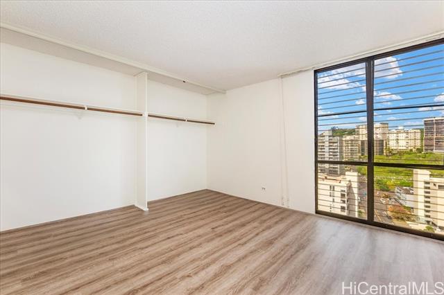 Welcome home to an urban high-rise oasis featuring sweeping city, mountain, and sunset views. This desirable 2-bedroom, 1-bath corner unit offers flexible living with a versatile bonus space - ideal for a home office or potential third sleeping area. Recently remodeled, the unit showcases brand-new kitchen appliances and a new electrical panel installed in July 2024, providing peace of mind and modern reliability. Unique to the ’06 stack, the home features an expanded entryway with additional storage, enhancing functionality. The original large lanai has been thoughtfully enclosed to create expanded interior living space. Enjoy refreshing cross-breezes and stunning vistas from this well-situated unit, conveniently located near freeway access, shopping, and dining - just minutes from Ala Moana Shopping Center. A rare opportunity to own a corner unit with low maintenance fees in a prime location. Schedule your private showing today!