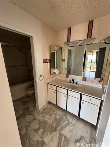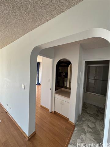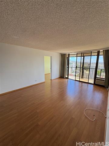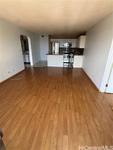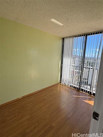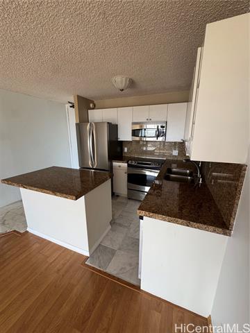 One bedroom with a separate den . Also a nice big lanai ocean and mountain virws.This is a secured building and secured parking . Close to shopping, freeways, bus stop, schools. Remodeled laminate floors ,stainless steel appliances in the kitchen granite counters you can use for eating your breakfast and dinner is on. New Washer and Dryer . Bright and cool breezes .