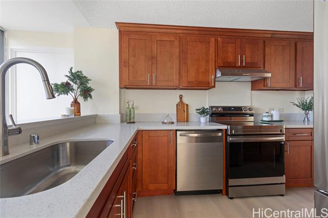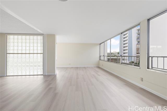 Newly remodeled. At 1,545 sq ft, this is the largest 2-bedroom unit in Makiki, priced to sell at an incredible $385.11/ sq ft. Featuring a new kitchen, updated flooring, and fresh paint, new bathroom sink, mirror and lighting. This east side corner unit provides: Boutique Tower (44 units total), Pet- Friendly & High Owner-Occupancy, Heated Pool & Koi Pond, Updated Plumbing, Minutes to Ala Moana Mall, Walmart & Sam's Club. Don't miss the best price-per sq ft in town.