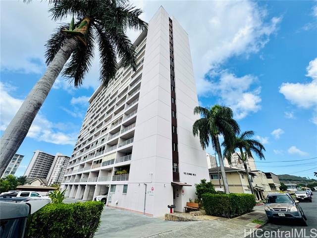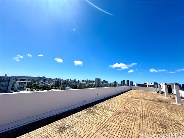 Corner-end charming studio with spacious covered lanai—move-in ready! Enjoy city and mountain views with cool breezes from the tiled lanai. Recent upgrades include new flooring in the main room and freshly painted walls. Ample storage throughout, and the unit is located away from elevator noise for added privacy. Well-maintained building with secured entry and great amenities: pool, sauna, gym, BBQ area, and rooftop access for unobstructed city and mountain views. Large community laundry facility on the first floor. One uncovered assigned parking stall included. Conveniently located in Makiki, closed to grocery shops, schools, parks, restaurants, beach and shopping. Great for to live or invest! Property to be sold in AS-IS condition. OPEN HOUSE this Sunday, 10/5/2025 from 2 to 4:30 PM.