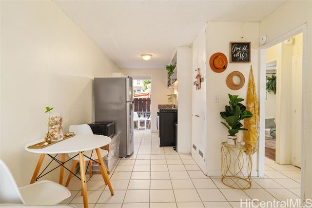 Discover this delightful starter condo nestled in the vibrant Makiki area! Perfectly situated for convenience, it offers seamless access to the freeway, as well as proximity to top-notch schools, bustling shopping malls, lush parks, and diverse dining options. This inviting ground-floor unit features 2 bedrooms, 1 bathroom, and 1 parking space, all set in a tranquil environment. The unit's back door opens to a quaint private backyard, and a generous outdoor storage area adds extra functionality. Inside, you'll find plenty of updates including a new Whirlpool refrigerator and gas range, a beautifully tiled walk-in shower & ceiling fans throughout. the existing furniture can be included if that is of interest. Enjoy the convenience of having an excellent parking space directly in front of your unit, community laundry facilities, and the convenience of two guest stalls. A pet-friendly building as well (please verify), this condo truly offers a blend of comfort and flexibility for your lifestyle.
