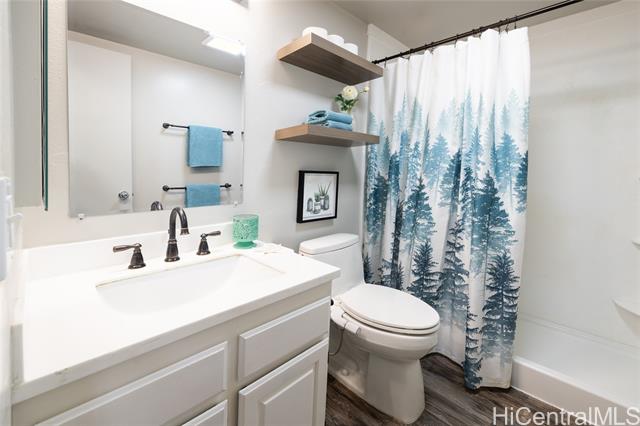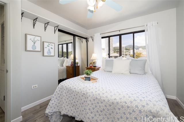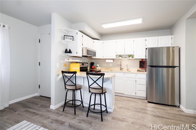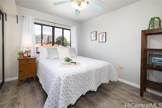 Bright and airy 2 BEDROOM, 2 FULL BATHROOM condo in the heart of Honolulu! Beautifully updated throughout with brand-new luxury vinyl plank flooring, newly painted, and a modern stainless steel kitchen featuring a brand-new refrigerator, newer appliances, reverse osmosis water filtration, and eat-at counter. Enjoy the convenience of in-unit washer and dryer, air conditioning, electric blinds, and ample storage. ASSIGNED, COVERED, AND SECURE PARKING plus guest parking. This GATED BUILDING is a low rise with one of the lowest maintenance fees in town, just $560/month. Exceptionally convenient to H-1, shopping and dining, parks, basketball courts, public swimming pool, schools, and the bus line and just minutes to Waikiki, Chinatown, and Ala Moana. Also a great INVESTMENT OPPORTUNITY with potential for consistent rental income. This is truly one of those incredible Honolulu opportunities that doesn't come around often.