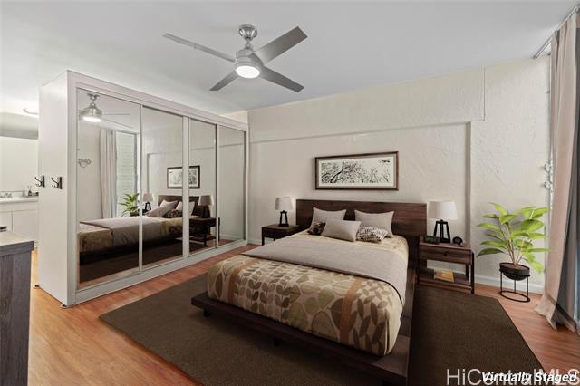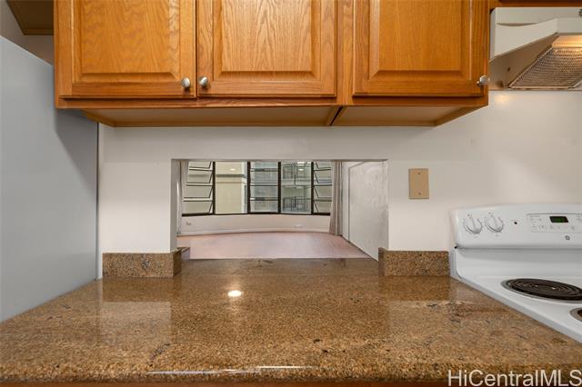 Welcome to Ode Rancho, your tranquil oasis in the lively heart of Honolulu. Picture yourself relaxing in a spacious living and dining area, ideal for intimate gatherings or lively dinners. The thoughtfully designed layout features a generously sized bedroom with a large en suite, your perfect retreat for unwinding after a long day. Embrace the luxury of one of the largest one-bedroom units, where stylish vinyl plank flooring flows effortlessly beneath your feet. Large windows invite natural light, creating a warm and inviting atmosphere, while smooth, popcorn-free ceilings add a modern touch. Elevate your culinary experiences in the refreshed kitchen, a space where cooking becomes a joy amidst pristine interiors. Enjoy the convenience of remote-access parking and a secured entry that ensures peace of mind. Ode Rancho offers a harmonious blend of spaciousness, contemporary style, and security—a true gem for those seeking both comfort and a vibrant urban lifestyle.