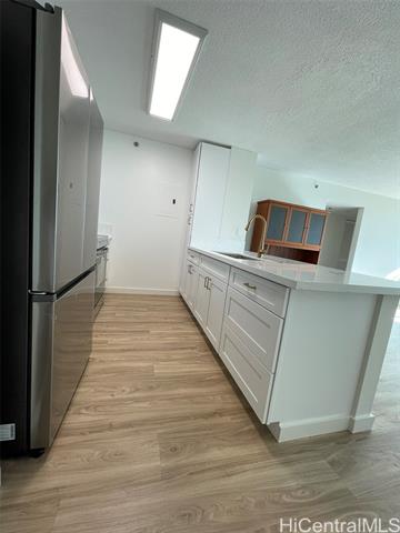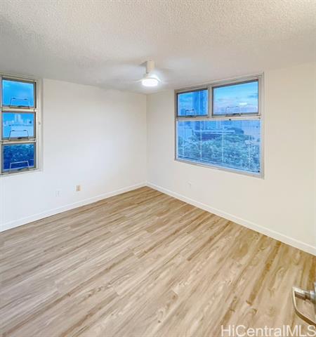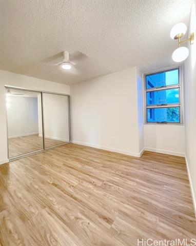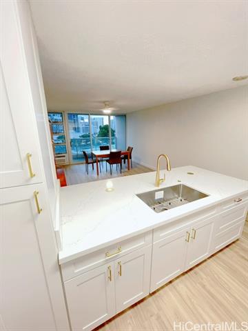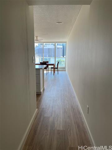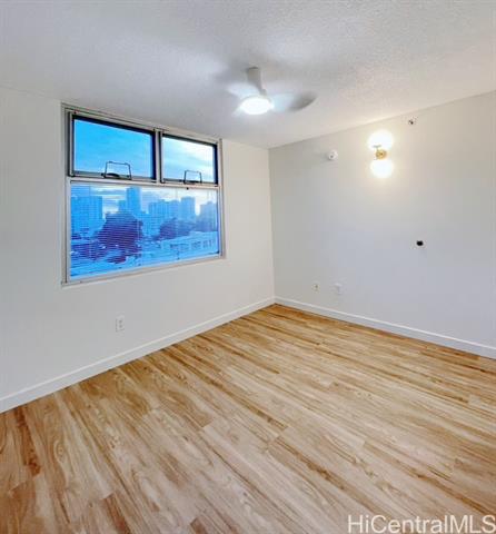 Renovated in 2025! 1448 Young St - built in 1999. Beautiful and bright 2BR/1BA with upgraded luxury vinyl floors throughout, new paint, new bathroom vanity, contemporary open kitchen with new cabinets and new appliances, ceiling fans, new A/C, new light fixtures and more! Centrally located building, close to Ala Moana Shopping Center, Sam's Club, Walmart, restaurants, grocery stores and easy freeway access. Secure building with resident manager and security on duty at entry. Lots of guest parking. Great Leasehold property: City and County of Honolulu owns ground lease. Lease rent is only $1 year until 2029 and lease expires in 2064. Low maintenance fees! Pets: aquarium fish only.