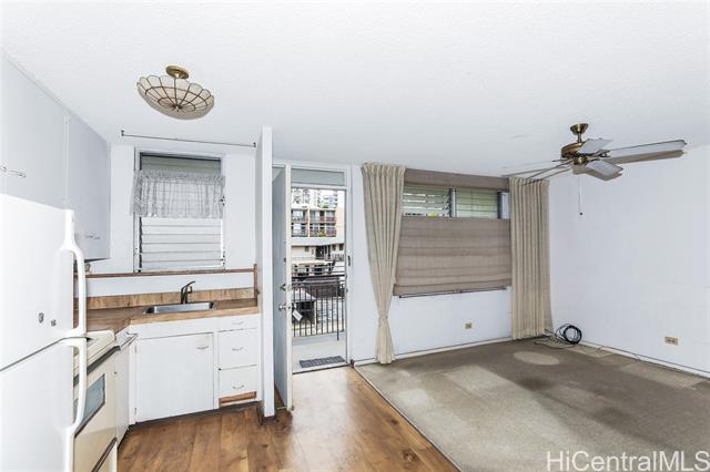 Fee simple 1-bedroom, 1-bath unit with 1 parking stall on the 3rd floor of 1525 Pensacola. This well-situated property sits next to a protected bike lane which offers convenience and accessiblity. Vinyl plank flooring and carpet are featured throughout the unit. Built in 1967, this unit includes a refrigerator, range/oven, washer/dryer, ceiling fans and a window air conditioner in the bedroom. This low-rise walk-up condominium is conveniently located in Urban Honolulu with easy access to the freeway on-ramp and along the bus route, this property is just minutes from shopping, nearby restaurants and the downtown business district.