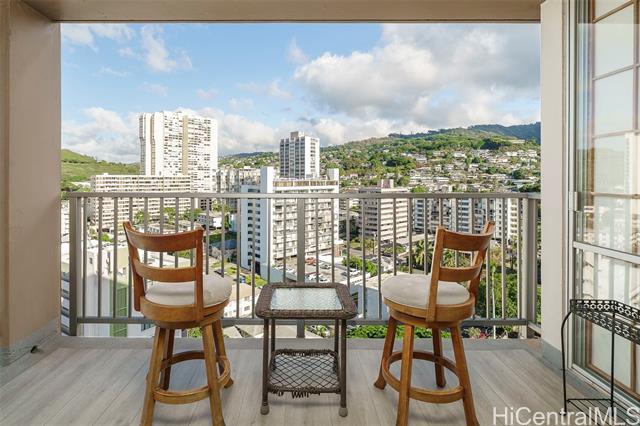 Town living at its finest from this high floor, premium “01” corner unit at Makiki Towers. This renovated 2-bedroom, 1.5 bathroom has all the modern upgrades: fully renovated in 2014 and upgraded with vinyl plank flooring, new paint, and popcorn ceiling removal in 2023. Enjoy cool breezes and beautiful mountain views from the lanai. Ready to move in with combined washer-dryer, covered parking, and additional storage locker. Award Winning Building and Management, Makiki Towers is a hidden gem with a pool, bbq areas, landscaped walking paths, and more. Walking distance to Punahou, Maryknoll, and a few minute drive to everything town has to offer.