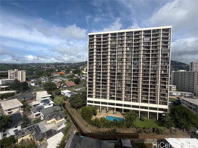 Location, location, location. This fee-simple corner unit condo in Makiki consisting of 2 bedroom, 1 bath, and 1 covered parking condo is a great opportunity for those looking for an affordable condo in town, or investors. High floor unit has mountain and city views. This secured building amenities include onsite resident manager, community laundry room, bike storage, 2 elevators, and is up-to-code for fire alarm system. Conveniently located near the Ala Moana/Punahou area, Makiki Shopping village that has Restaurants, Makiki District Park, Stevenson Middle School, Roosevelt High School, Bus Stops, and Freeway access going east and west. This is a short sale and will be sold "As Is". Please add the Short Sale Disclosure and Distressed Property addendum to all offers.