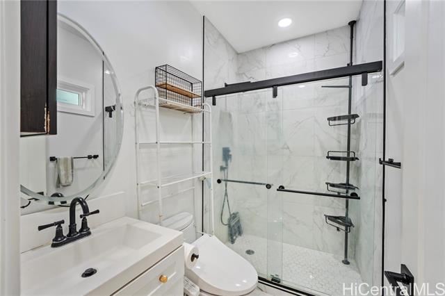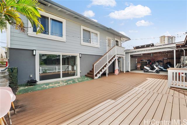 Exceptional multi-generational property with strong flexibility and income potential. This expansive residence features a total of 7 bedrooms, 1 den, and 5.5 bathrooms, thoughtfully configured with a fully remodeled main home and a separate Ohana dwelling. The front house was completely remodeled in 2024, including a new roof, new siding, and double-wall construction. The upstairs offers 3 bedrooms and 2 bathrooms, while the downstairs—accessible via a private exterior staircase—features 1 bedroom, an entertainment room/den, and 1.5 bathrooms, ideal for extended family, guests, or rental use. The detached Ohana dwelling provides additional versatility with 2 bedrooms and 1 bathroom upstairs, plus 1 bedroom and 1 bathroom downstairs, perfect for multi-family living or supplemental income. Property is equipped with 50 photovoltaic (PV) panels and 2 Tesla Powerwall battery systems. A new enclosed carport and driveway(could park up to 10 cars) completed in 2025 add convenience and curb appeal. This well-designed property offers modern upgrades, flexible living arrangements, and outstanding value for owner-occupants or investors alike. Same as MLS 202600823.
