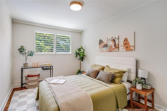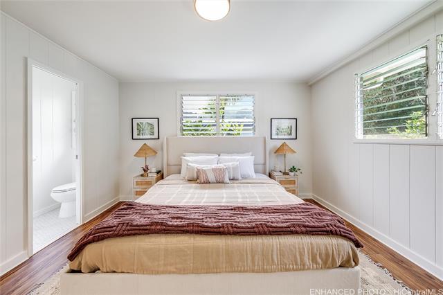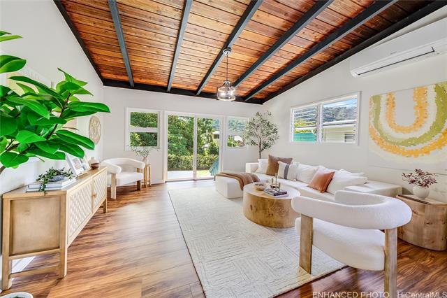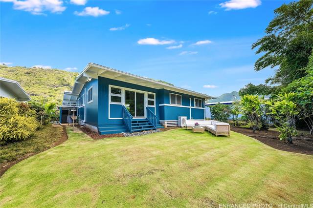 Welcome to 2935 Poelua Street, tucked away in the heart of lush Manoa Valley. 1st time ever on the market, this single-level 3-bed, 1.5-bathroom home offers the comfort and familiarity of traditional Hawai'i but with a modern touch. Vaulted ceilings & fresh interior and exterior paint create a bright, inviting atmosphere along with new luxury vinyl plank flooring and crisp tile in the bathrooms. All-new permitted 200-amp service & wiring, stylish new light fixtures, and a 2014 roof that was reinspected last year. A landscaped lawn invites you from the front. Out back, another spacious grassy lawn framed by tall trees provides a peaceful retreat while the gentle flow of Manoa stream(well below street level) adds to a serene setting. The quiet loop location is surrounded by longtime owner-occupant neighbors, offering both privacy & a true sense of community. With its charming curb appeal, natural surroundings, & thoughtful updates, 2935 Poelua Street is a special opportunity to own a home in one of Honolulu’s most beloved neighborhoods. Termite Fumigation + Warranty & Survey completed Aug 2024. **224sf lanai in rear of home was enclosed long ago & is not reflected in tax records.