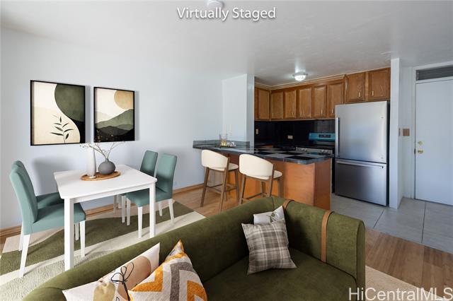 Right across the street from the University of Hawaii campus! This 1 bedroom, 1 bathroom condo has an amazing location and comes with a deeded parking stall! Remodeled Bathroom, new vinyl plank flooring , new appliances and move in ready!. Perfect for students, faculty member, or anyone wanting to be in the center of it all, Enjoy the university atmosphere and all the amenities the area has to offer. This condo includes a highly desired covered and assigned parking stall. University Court is a pet-friendly building. Building has 100% hurricane insurance.