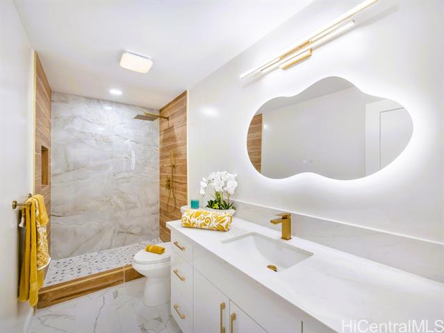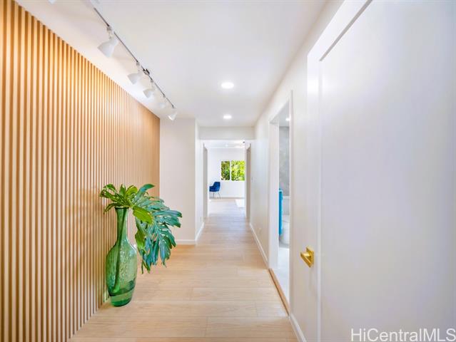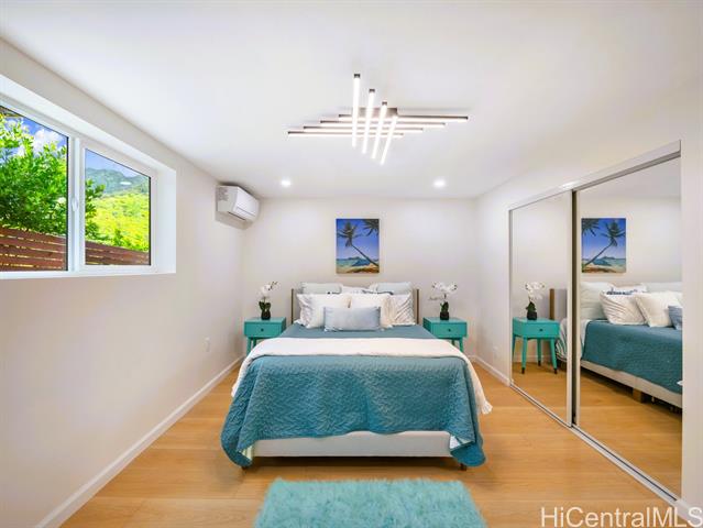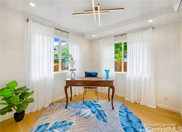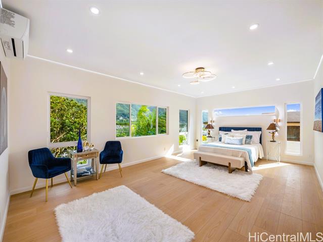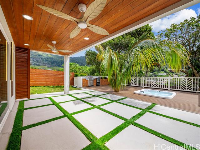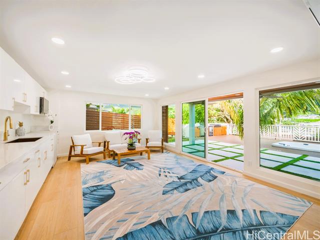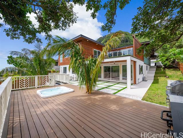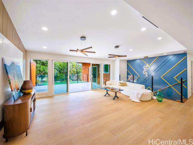 Modern elegance constructed by an award-winning design builder that combines contemporary luxury w/ stunning views of the majestic green Manoa Valley. Comprehensive 2026 renovations & additions: a new roof, new plumbing, upgraded electric, and EV charger. 7 bdrms and 5 ba seamlessly merge modern sophistication with lush, tropical landscape. Sleek luxury plank flooring flows throughout. Enjoy a high-end chef’s kitchen showcasing 3 ovens, a massive quartz waterfall island, LED lighting, and a deep upscale sink with breezy views. A dramatic wall art leads to the lower level, an entertainment haven, with a full wet bar, premium appliances, and a spacious media or family room. Bottom floor has two separate entries, perfect for multi-generational living. 5 exquisitely tiled bathrooms act as a spa-like retreat with modern and trendy fixtures and finishes. The second-story primary room and lanai provide majestic mountain views. The lower patio leads to a premier decked entertainment area. True showstoppers include: outdoor kitchen with mini fridge, custom barbecue, and a sunken hot tub, set against a backdrop of mature tropical vegetation. 2026 Renovations & Expansions. Photos enhanced.