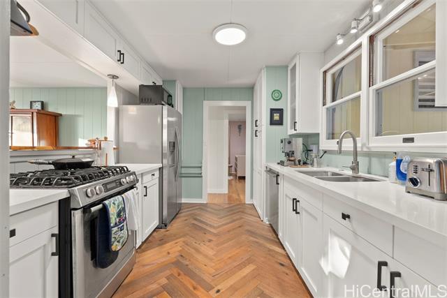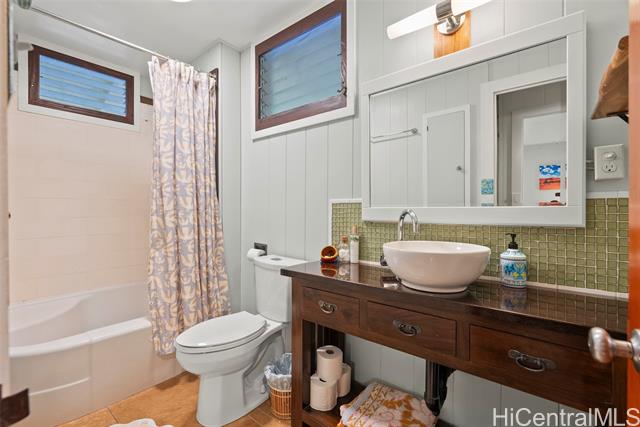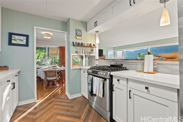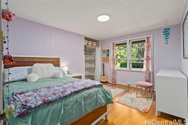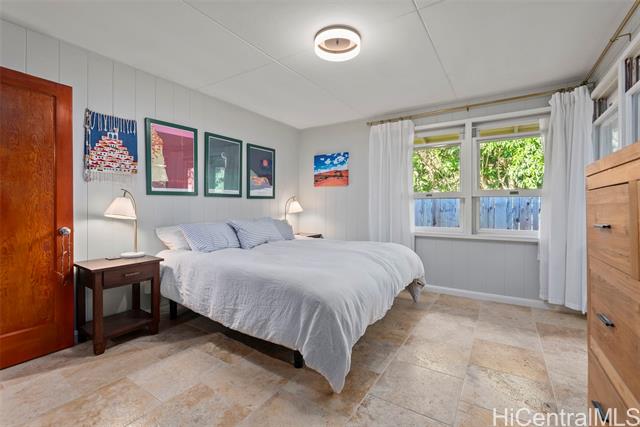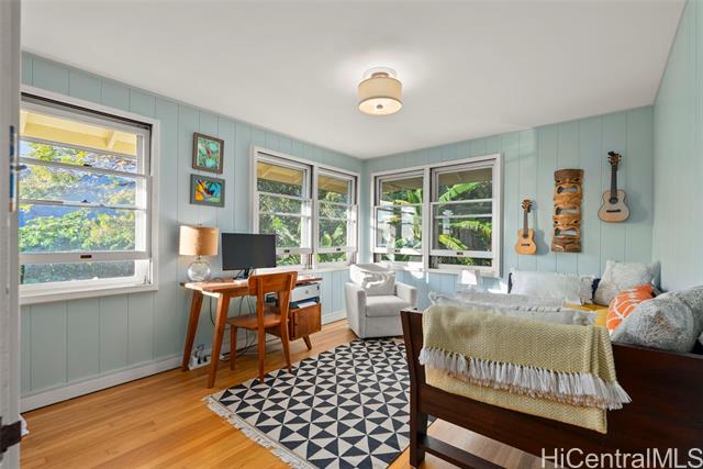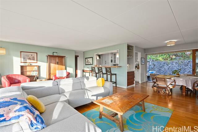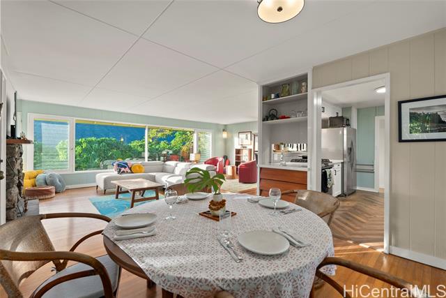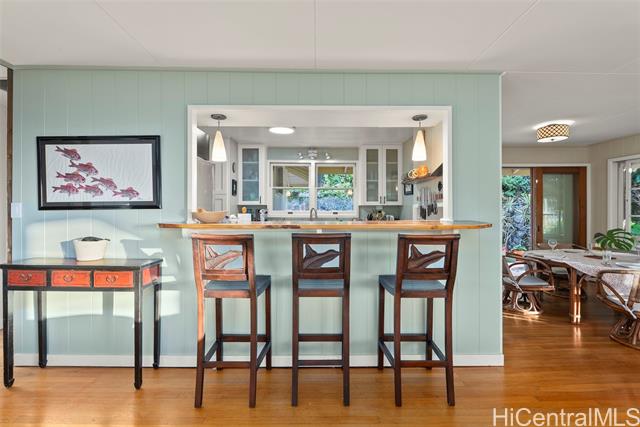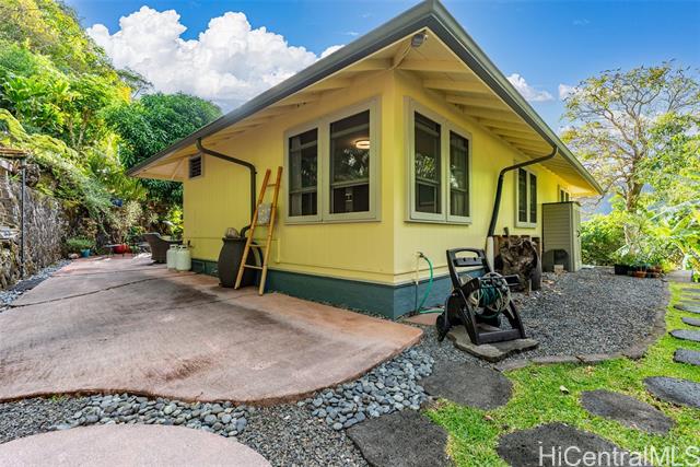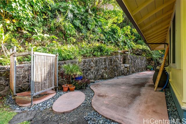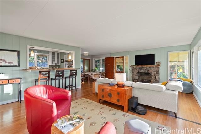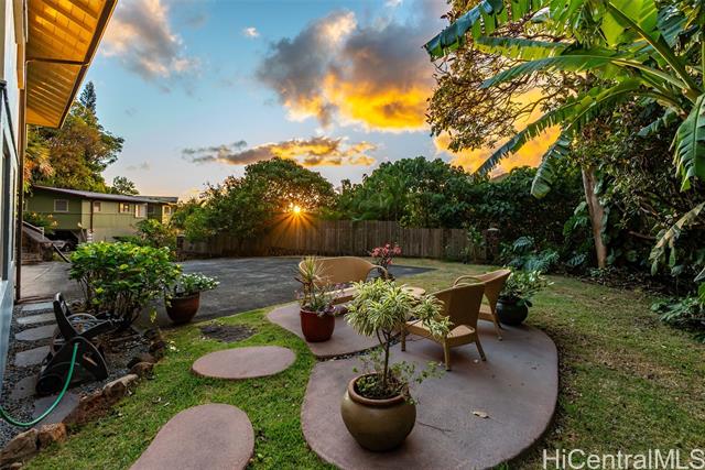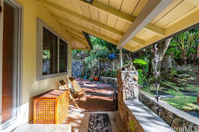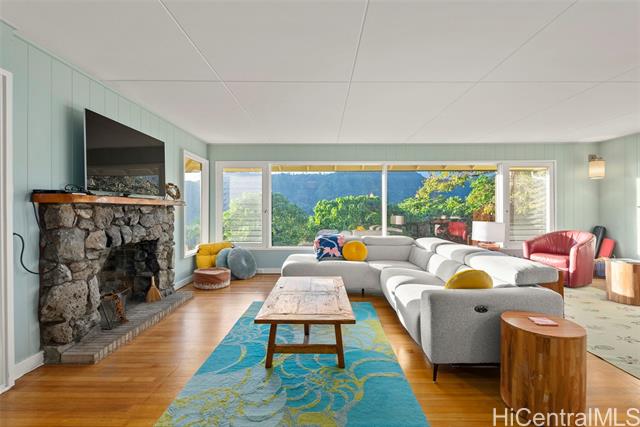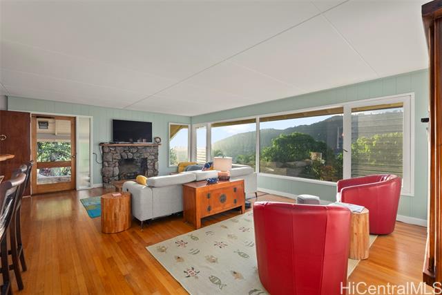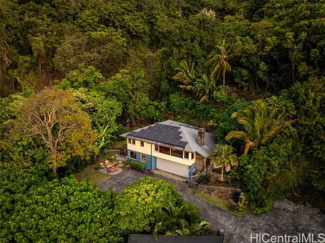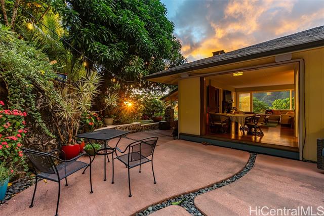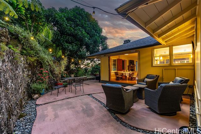Experience the rare chance to own a private retreat that radiates the charm of old Hawaii, in beautiful Manoa. Situated on a sprawling 39,487 sq. ft. lot at the end of a private road, this exquisite 3-bed, 2-bath home offers peaceful seclusion while being just minutes from Manoa Market Place, University of Hawaii, Waikiki, & more. Thoughtfully upgraded & maintained, this home offers flexible living options, including a 3/1 upstairs with the potential for a 1/1 guest suite with a separate entrance downstairs. Enjoy panoramic mountain-to-Ala Moana views, 19 owned PV panels, tesla battery, EV charger, a remodeled kitchen with gas range/oven, & updated bathrooms. Original oak floors have been lovingly refinished, complemented by travertine, ceramic, & engineered wood in other areas. Restored details include double-hung windows, wooden screens, & mahogany stacking doors that open the dining area to a lush, outdoor lanai, blending indoor-outdoor living . The centerpiece lava rock fireplace adds warmth to the living and family room. Complete with an oversized garage w/ room for potentially up to three cars, this one-of-a-kind home is a must-see. Watch the video & schedule your tour today!