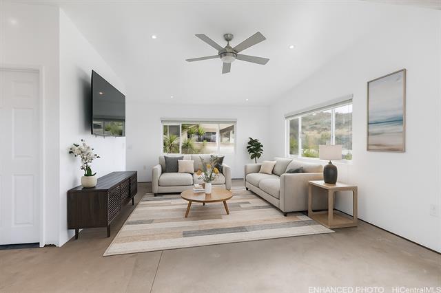 Welcome to Moanalua Gardens. This spacious 1,754 sf home sits on a large 7,644 sf lot and offers beautiful city, coastline, ocean, and mountain views. The main home features 2 bedrooms and a 1/2 bath with all-new windows. The home is partially renovated, giving buyers a great opportunity to add their own finishing touches. The highlight is the newly built, 460 sf studio with a private entrance, full bath, and direct access to a covered patio. Ideal for multi-generational living, guests, or a separate home office. The large lot provides room to garden, play, or expand, and the quiet cul-de-sac location offers privacy while still being close to Moanalua’s top-rated schools, Tripler, Fort Shafter, parks, shopping, dining, and freeway access. Freshly cleaned and ready for your vision, this home offers space, views, and flexibility in one of Honolulu’s most sought-after neighborhoods. Property to be sold As Is.
