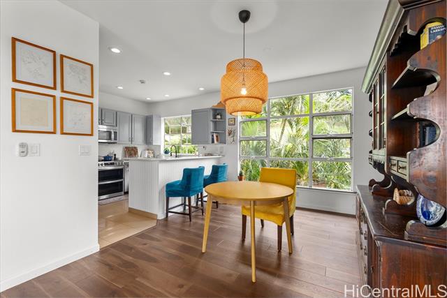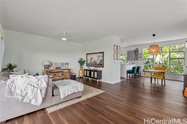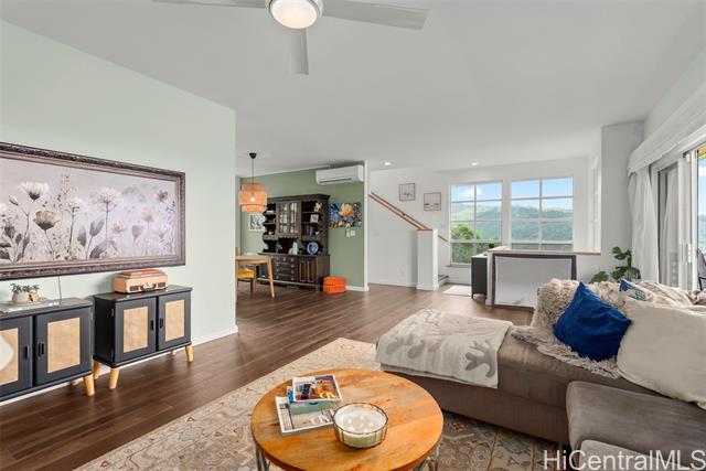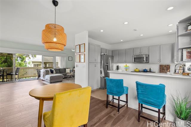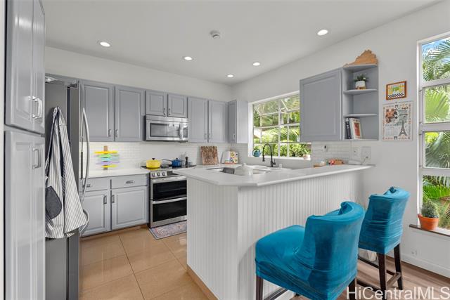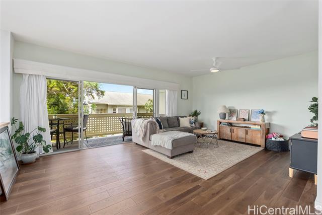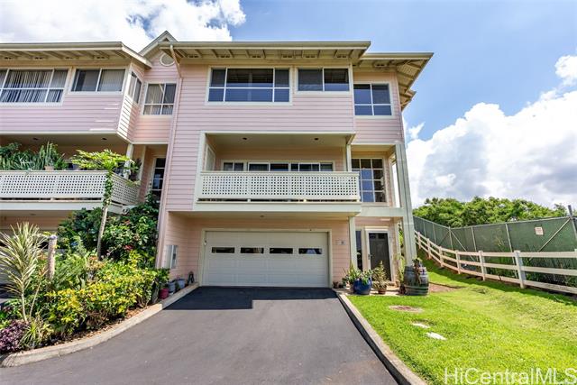 The PERFECT Honolulu location! Welcome to Moanalua Village – an exceptional end-unit townhome that feels like a single family home with golf course, harbor and ocean views perched above Moanalua Golf Course. With abundant ambient light this bright and spacious 1,799 sq ft, three-level residence offers privacy with only one adjoining neighbor and no one behind. Built as a 2 bedroom with an oversized primary suite and a second bedroom, this home was originally designed as 3 bed/2.5 bath and is convertible back to three bedrooms to suit your needs. The thoughtful layout places the two-car garage and laundry on the ground floor, the kitchen and main living area in the middle level for convenient entertaining, and the bedrooms on the top floor for quiet and separation. Enjoy gated-community living with resort-style amenities including a pool, recreation room and barbeque area. Location is ideal – midway between Honolulu and Pearl Harbor, with easy access to Central Oahu, the North Shore, West Oahu, and quick trips to Kaneohe and Kailua. Comfort, security, space and convenience – schedule a showing today to see why this Moanalua Village home stands out. For OH plse park in guest parking.