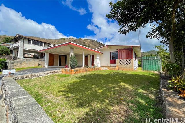 NO SHOWINGS PRIOR FIRST OPEN HOUSE on SUNDAY 11/16 from 2-5pm. This home offers an opportunity to craft your dream home in an unbeatable location. The single-level layout is awaiting your modern flair and design magic. Enjoy a large backyard perfect for future barbecues, a potential garden, a space for dogs to zoom, or just for you to unwind. Gaze out at the majestic Moanalua Valley, where after a good rain, the cliffs get dressed up with temporary waterfalls. You’re nestled just moments from the serene Moanalua Gardens and the fairways of the Moanalua Golf Course. You get this wonderful feeling of seclusion, and are conveniently close to schools and charming neighborhood parks. When you need a dose of city energy, zipping onto the H-1 freeway is an absolute cinch. Come unlock the potential and build a future in a place where everyday living feels like an escape. Your vision, your design.