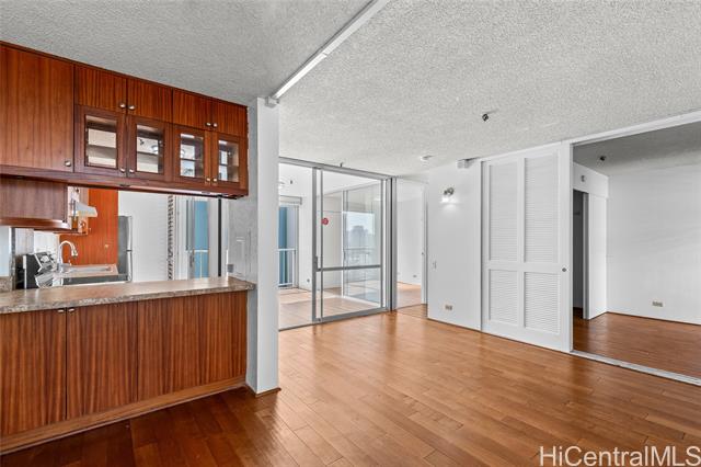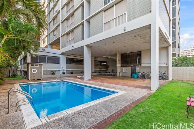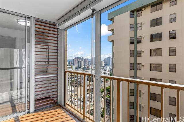 Location, Location, Location in Makiki Central Honolulu. 5 minutes to Waikiki, University of Hawaii, Downtown Business Area, World Famous Ala Moana Shopping Center, Numerous restaurants, Kapiolani Park, Zoo, Museums, elite private high schools (Punahou, Iolani, Maryknoll), and numerous small businesses. On the 14th floor of a 15 story Building in the east tower. An enclosed lanai creates a 710 SF interior living space. The dining area faces east. Electricity is sub-metered and charged back to the apartment owner. Custom-built kitchen cabinets. Stainless steel refrigerator and range oven. New LVP flooring, lights, and an upgraded bathroom. Great place for an owner to live or rent in this high-demand neighborhood.