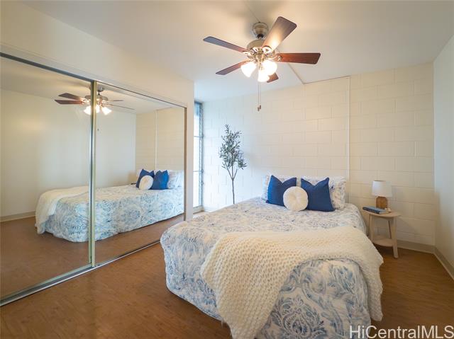 Located right next to Kapiolani Hospital and short distances away from all that town has to offer, Alexander Arms a very convenient place to call home! Amenities include pool and car wash area on-site, while secured lobbies mean you can enjoy living there or know your tenant will enjoy it too! The unit is fully-refreshed, with brand new paint, updated plumbing fixtures, full-sized washer/dryer, upgraded vinyl floors throughout, and we’ve repaired all the windows and lanai door. Two full bathrooms mean there’s an en-suite one for the primary bedroom, and another full bath with tub shower for the other bedroom and guests. Single-loaded building also means that you can open up both sides of the unit and get a good breeze through. Plus, it’s an end unit, so there are no other units past you on the hallway. Make an appointment today to come and see why this is such a great value for town, and why you should make it your home or investment today! One or more images have been virtually enhanced.