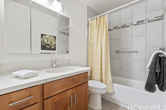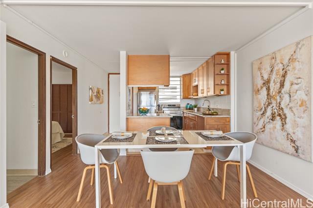 Welcome to Unit 901 at Alexander Arms, a bright and updated corner residence which is centrally located. This 2-bedroom, 2-bath home with 1-assigned parking stall, sits on the 9th floor and enjoys excellent natural light, cool breezes, and added privacy. Inside, travertine tile, luxury vinyl plank flooring, and smooth ceilings create a clean, modern feel, while split A/C keeps the home comfortable year-round. The enclosed lanai expands your interior living space. Both bedrooms and bathrooms are well-proportioned, offering flexibility and everyday comfort. Washer/Dryer/water heater are in the unit for your convenience. Even better, the seller has already PAID OFF IN FULL the elevator and fire alarm special assessment, giving the next owner peace of mind and a financial advantage. With UH Manoa, multiple schools, area hospitals, Waikiki, shopping, dining, all close by. Major bus lines just minutes away, this move-in-ready home delivers convenience, comfort, and an ideal Honolulu lifestyle. Whether you are a first-time homebuyer, a student, a medical professional, or an investor, this unit could be perfect for you! Schedule your showing today!