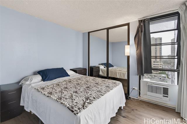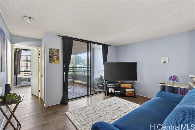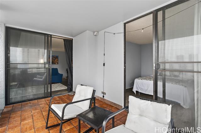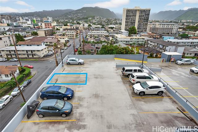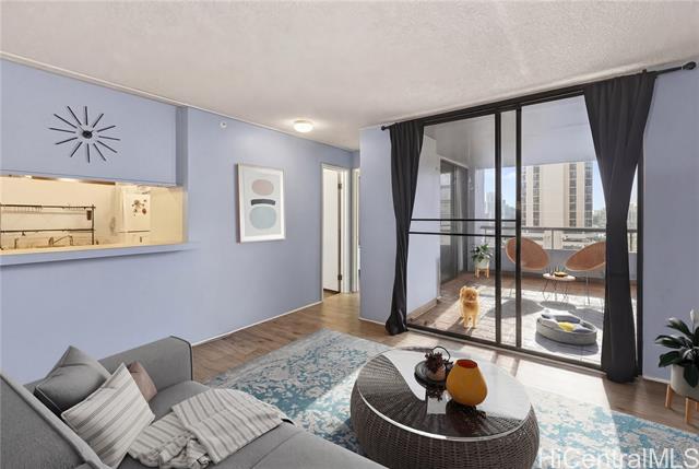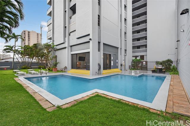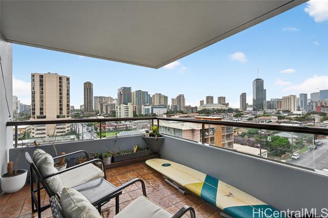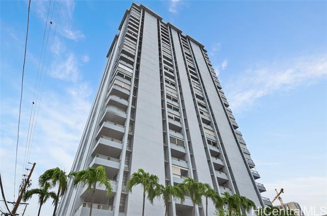 Higher floor desirable corner unit with beautiful city views and centrally located! Spacious unit with expansive covered lanai overlooking the skyline views or a spot for you and your fur baby to lounge. The building is very well-maintained, offers secured parking garage with guest parking and lobby area, swimming pool, BBQ area, fire sprinklers and 100% hurricane insured for peace of mind. Monthly maintenance includes: cable, internet, hot water, water, sewer, master insurance and amenities. VA Assumable at 5.75% loan through Movement Mortgage - Only qualified eligible VA buyers will be considered, thank you. VA approved and Pet friendly. Wonderful tenants, so please allow advance notice for viewing - Mahalo!