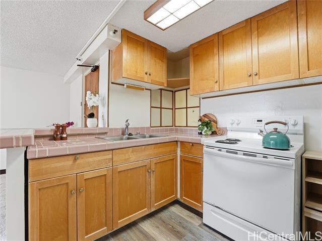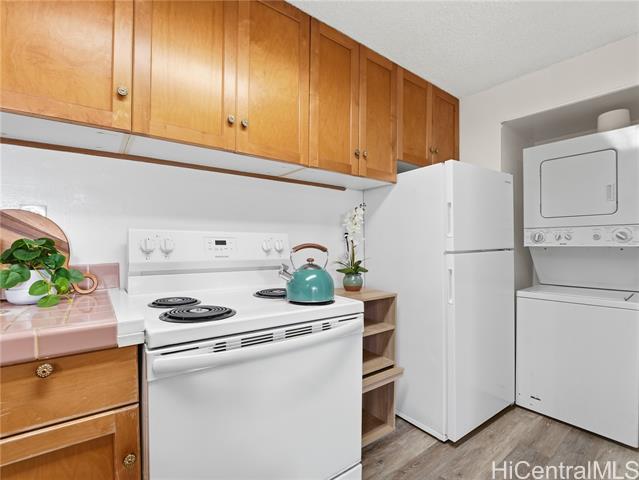 Nestled in the desirable community of Mo'ili'ili, this well-maintained 791 sq ft, one-bedroom condo offers both comfort and convenience. Step onto the expansive 66 sq ft lanai, perfect for enjoying your morning coffee and breeze. The interior has recently installed flooring, a fresh coat of paint throughout, and the added practicality of a washer and dryer conveniently located within the unit. Building's plumbing was completed in 2025, providing peace of mind for the owner. Situated in the vibrant heart of Honolulu, this property offers unparalleled access. Enjoy easy walking distance to the University of Hawaii, a charming array of coffee shops, delightful local eateries, and convenient shopping options. The unit includes one assigned, covered parking stall within the secure garage, adding to the overall appeal and convenience of this fantastic condo.