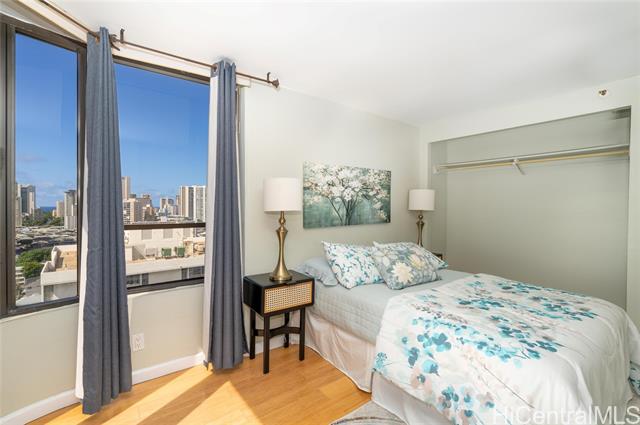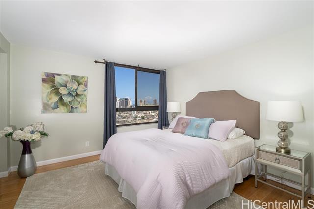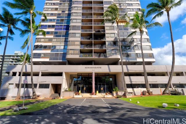 Spacious open floor plan 2-bed,2 bath, breezy corner unit 2 assigned (tandem) FEE SIMPLE. Ready to move in!!! Diamond head, Waikiki, city, and some ocean views. Renovated/Upgraded 2019: Floor, Kitchen, Bathrooms, NO POPCORN CEILING. Washer and dryer in the unit. Newer Glass top stove, Dish Washer, refrigerator. Newly Re-Pipe the whole building. Kings Gate equipped with fire sprinkler system. Onsite resident manager. Convenient location! Close to University of Hawaii/ Moiliili/ Ala Moana/ Waikiki area. Other assessment $266 will be end by Dec.2025