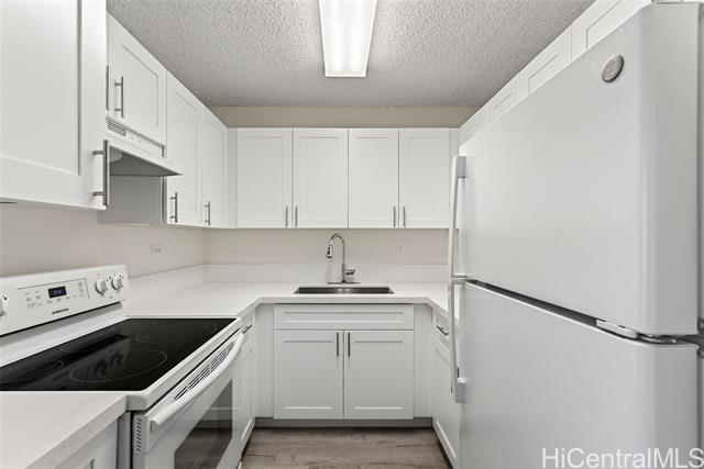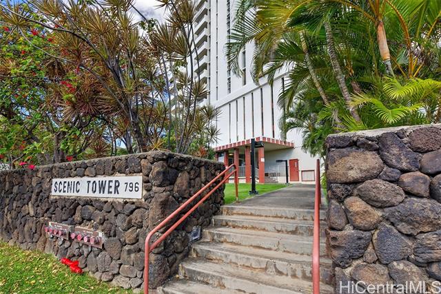 This home can command a Higher Value than others in Scenic Towers, due to its Panoramic Views of Diamond Head & Manoa Valley. Location is Everything. Only Five minutes to the University of Hawaii, Six to Ala Moana & Seven to World Famous Waikiki Beach. Enjoy Life & Relax More as you watch the Moon Rise from your patio lanai. Recent upgrades include New Kitchen Cabinets, Quartz Counters, Water Resistant Flooring, Freshly Painted Walls & a Re-glazed Bath Tub area. Maintenance fees include electricity, internet, cable & water, so you can rest at ease with an AC running all day. Scenic Towers is 100% hurricane insured (pls verify with your lender). One covered parking space included and washer/dryer in unit. Sparkling clean pool, BBQ grills, & currently employing excellent on-site property management. This is the one you want. This is home. This is 808Living! Some photos enhanced with digital staging.