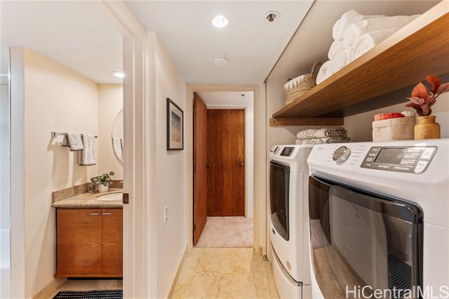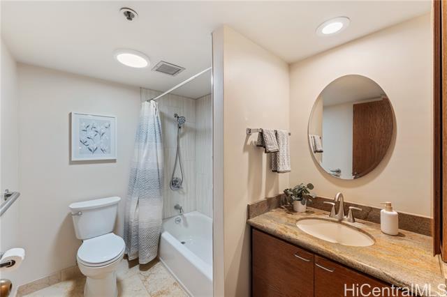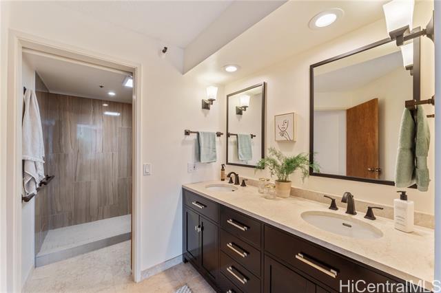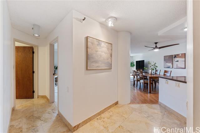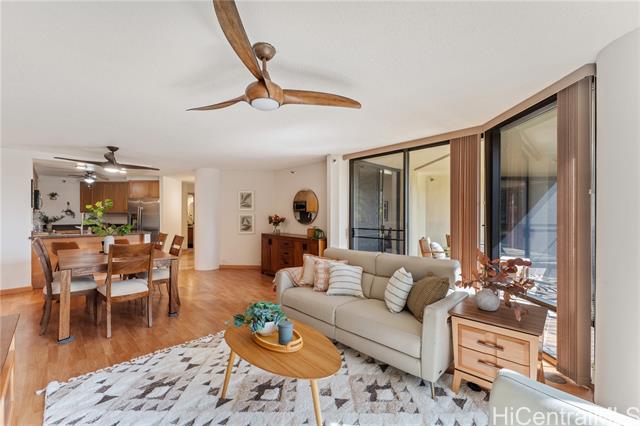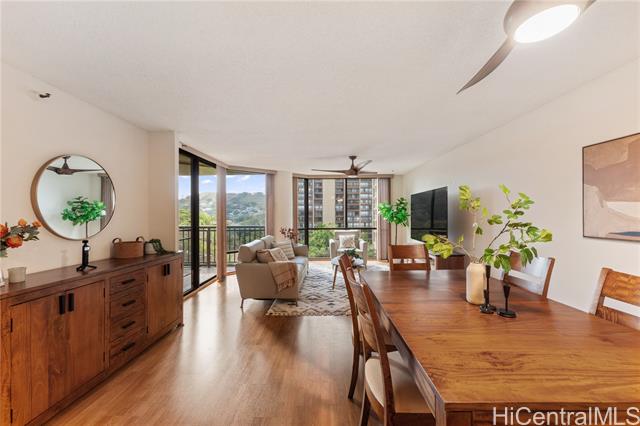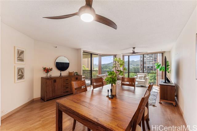 Upgraded and move-in ready 3-bedroom, 2-bath home with 1,451 sf of interior space plus a deep 205sf covered lanai with soothing treetop views. Located in Craigside, a well-kept, fully staffed condo built in 1981 with 24-hour security, fire sprinklers, and plenty of guest parking. This home features luxury vinyl plank flooring in the main living areas, tile in the kitchen and baths, and stone countertops with real wood cabinets throughout—giving it a clean, timeless feel. The spacious primary suite includes dual sinks, a tiled shower, new fixtures and toilet, and three wall closets for ample storage. There’s also an additional walk-in pantry/storage closet and ceiling fans throughout for great airflow. The lanai is wide, shaded, and perfect for outdoor furniture—protected from the afternoon sun and surrounded by lush greenery. Comes with two covered parking stalls and access to over ten covered guest stalls. The HOA is less than $1/sf! A great alternative to a single-family home in Honolulu—without the $1M+ price tag.
