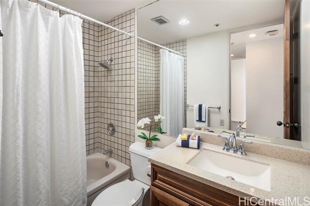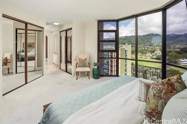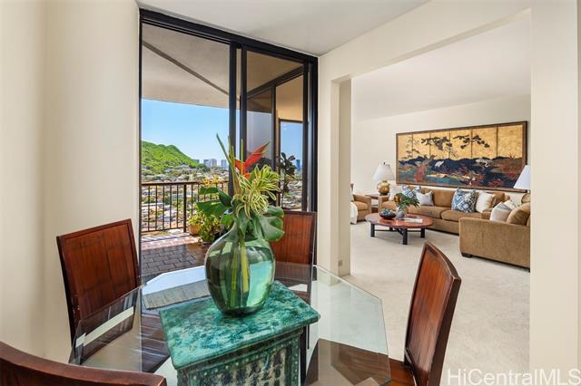 Rare opportunity to purchase a high-floor #21B unit in highly desirable Tower II at Craigside, located on the cool side of the building with ocean, mountain, and open city views. Originally a 3-bedroom, this unit has been reconfigured into a very spacious 2-bedroom floor plan, offering generous living and dining areas and a comfortable, open layout. Tower II is known for its enhanced privacy, with only two units per floor, creating a quieter, more private living environment. A spacious lanai enhances indoor-outdoor living and allows for excellent natural airflow. Two side-by-side parking stalls are included. Craigside is a well-managed, pet-friendly community offering 24-hour security, on-site resident manager, two swimming pools, Jacuzzis, sauna, tennis courts, fitness center, BBQ areas, car wash area, and ample guest parking, all set within beautifully landscaped grounds. Convenient Lower Nuuanu location with easy access to Downtown Honolulu, Queen’s Medical Center, Pali Highway, shopping, dining, and daily conveniences. Leasehold property; fee is not available for purchase. Sold strictly As Is.