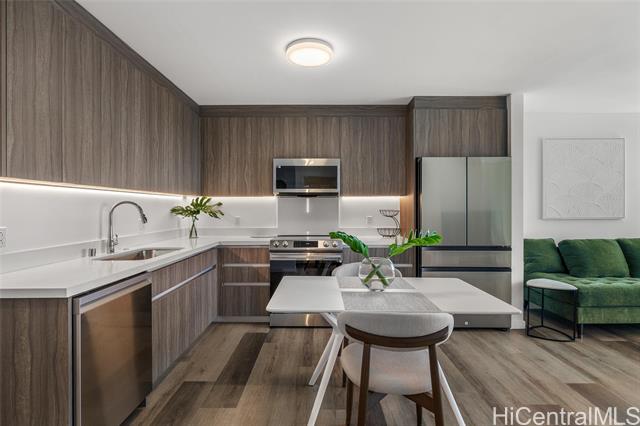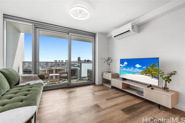 Experience Elevated Island Living Discover the perfect blend of sophistication and island charm in this beautifully staged high-floor 1-bedroom, 1-bath residence at The Park on Keeaumoku. Step onto your private lanai and take in panoramic views Honolulu’s twinkling city skyline—a breathtaking backdrop to your daily life. Inside, floor-to-ceiling windows fill the space with natural light, creating a seamless harmony between comfort and contemporary design. Resort-inspired amenities, including an infinity-edge pool and spa, a state-of-the-art fitness center with sauna and yoga studio, a private movie theater, BBQ cabanas, and co-working lounges designed for relaxation and productivity. With 24-hour security, secured parking, EV charging, and a vibrant Midtown Ala Moana location, every convenience is at your fingertips—from upscale shopping and dining to Honolulu’s best nightlife. This is more than a home—it’s a modern sanctuary in the heart of the city.