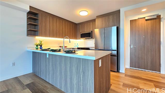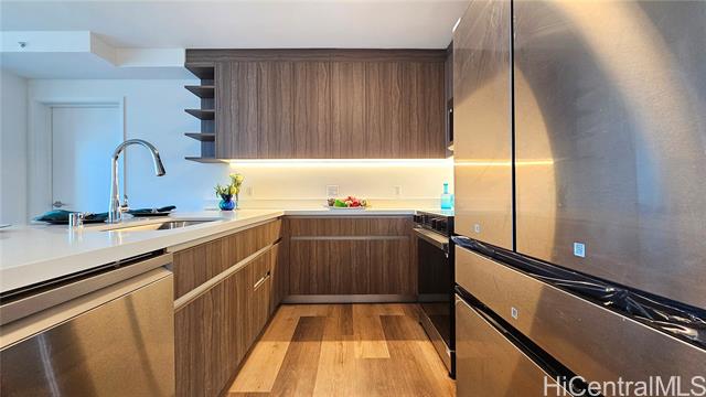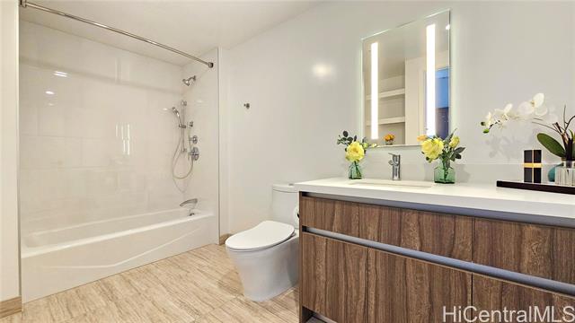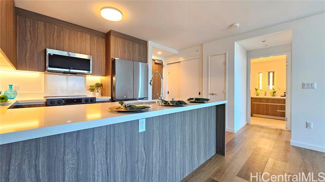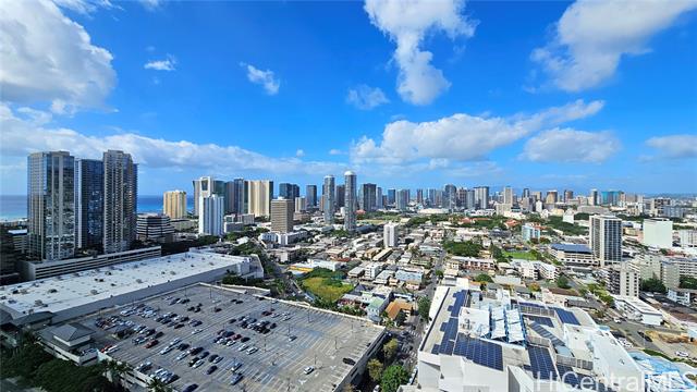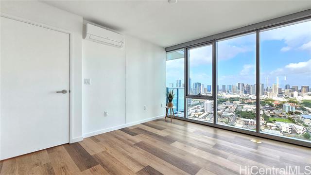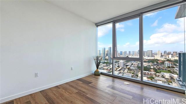 Centrally located brand new bldg. Brand new unit-never lived in Rycroft Tower w/ Beautiful panoramic vws of ocean, Mountain & city. Desirable open floor plan. Bedrooms are separated by living room. Spacious open kitchen w/ quartz counter tops & stainless steel appliances. Luxury vinyl plank flooring. Primary bdrm w/ walk in closet. Upgraded Toto toilet in primary bathroom. Split AC in every room, Floor to ceiling windows to enjoy beautiful vws. Spacious lanai overlooking the city, ocean & Mountain. Installed window shades, Expansive rec deck offers a variety of amenities to enjoy. Infinity Pool & spa, sauna, BBQ cabanas, Outdoor lounging areas, Fitness, Yoga studio, movie theater, co-working spaces, dog run & landscaped gardens. Pet-friendly. 2 covered side by side pkg stalls with 24/7 security and many guest pkg. Midtown Eats opened at ground floor for you to enjoy variety foods. Ala Moana beach park, Shopping Center, restaurants, entertainment, transit, and parks are near by for you to enjoy. Great living at conveniently located New building.