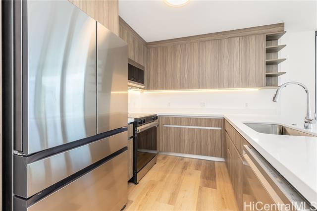 Experience island living in this stunning corner residence at The Park on Keeaumoku. Enjoy sweeping mountain and Diamond Head views from floor-to-ceiling windows and a spacious wrap-around lanai that invites natural light throughout the residence. the modern open-concept design features sleep finishes and a quiet split AC system for year -round comfort. Step outside to a resort-style amenity desk boasting a massive infinity pool and spa, private BBQ pavilions, a movie theater, co-working media rooms, a state-of-the-art fitness center with yoga room and sauna, plus 24/7securty. Additional conveniences include secured covered parking, over 25 EV charging stations, and bike storage. This pet-friendly community perfectly blends modern design and lifestyle convenience-don't miss your chance to own this urban retreat in the heart of Honolulu.