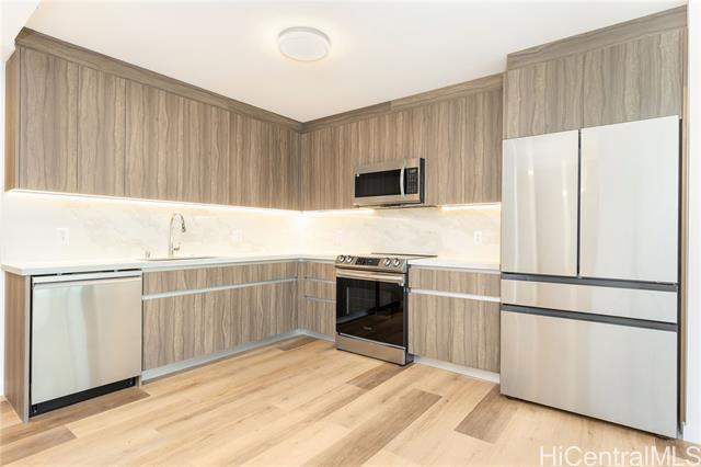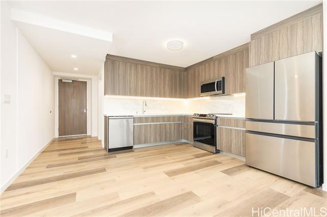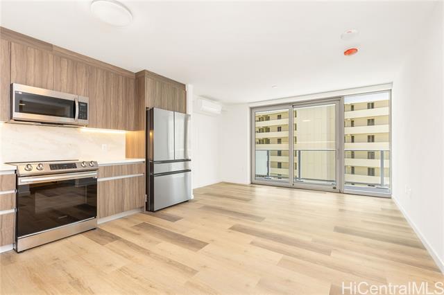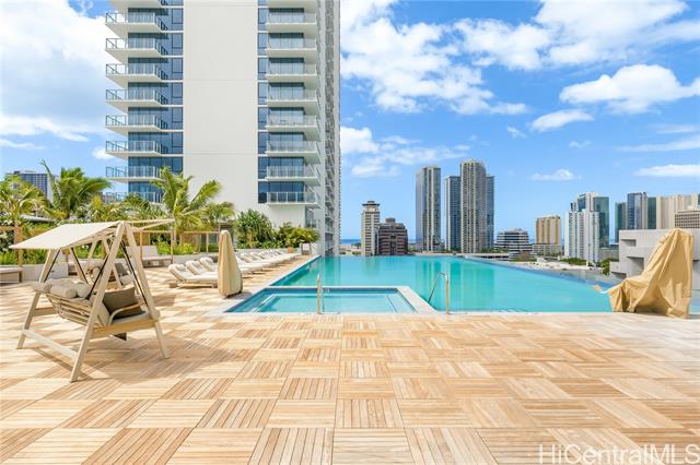 Experience elevated urban living in this one of a kind one-bedroom residence with a private lanai. This home has been thoughtfully enhanced with nearly $22,000 in upgrades, including premium luxury vinyl plank flooring throughout the entire unit, a Toto Aquia washlet (bidet) toilet, and a designer kitchen with upgraded quartz countertops and full backsplash. For added comfort and convenience, motorized roll-down shades offer effortless light control. Floor-to-ceiling windows allow natural light in, while a quiet split AC system keeps the home cool year-round. The resort-style amenity deck is second to none: massive infinity pool and spa, private BBQ pavilions, movie theater, co-working space and media room, fitness center with yoga room and sauna, plus 24/7 security, secured covered parking, over 25 EV charging stations, and bike storage. This pet-friendly community truly blends modern design with lifestyle convenience. Don’t miss your opportunity to own a stunning, upgraded retreat at The Park on Keeaumoku.